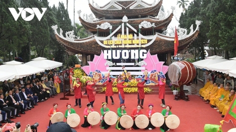 (VOV5) - Sáng 22/2 (mùng 6 Tết), lễ khai hội Lễ hội du lịch chùa Hương 2026 đã diễn ra tại sân chùa Thiên Trù (xã Hương Sơn, TP Hà Nội), thu hút hàng vạn người dân và du khách lễ Phật đầu Xuân.