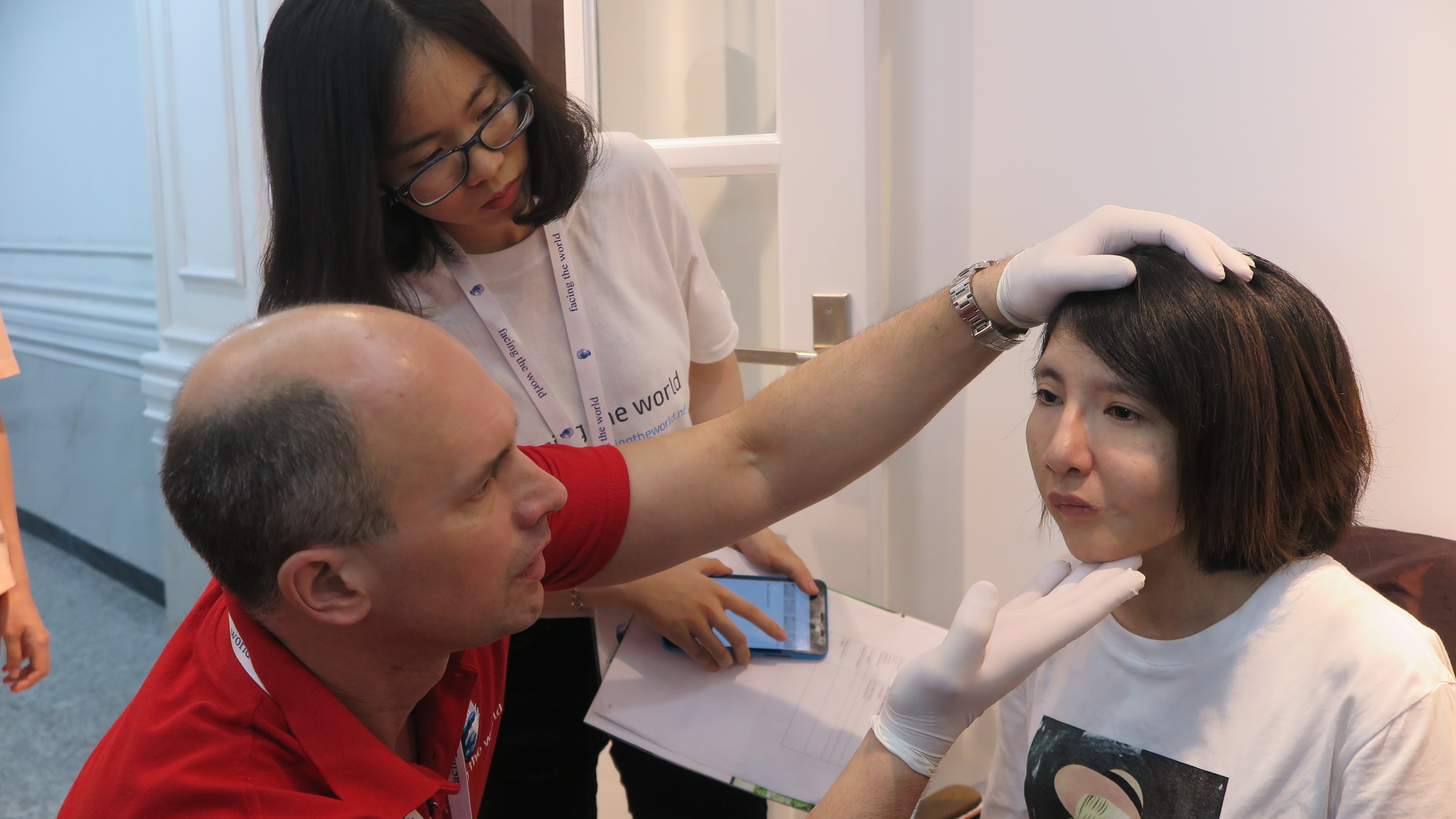 Sáng ngày 05/05/2018, ngay sau lễ khai mạc chương trình, bác sĩ Nguyệt Nhã – (Nguyên Phó Trưởng khoa sọ mặt tạo hình bệnh viện Nhi TW Hà Nội, từng hợp tác với rất nhiều đoàn bác sĩ nước ngoài sang Việt Nam thăm khám và phẫu thuật chỉnh hình nhân đạo) đã cùng đoàn chuyên gia Anh Quốc thăm khám trực tiếp cho hơn 40 em nhỏ, mỗi trường hợp đều được xem xét cẩn thận và chỉ định chụp CT sọ mặt nếu cần thiết để chẩn đoán chính xác khả năng phẫu thuật.