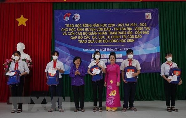 Chiều 28/2, tại huyện Côn Đảo (tỉnh Bà Rịa-Vũng Tàu), bà Trương Mỹ Hoa, nguyên Phó Chủ tịch nước, Chủ tịch Quỹ học bổng Vừ A Dính, Chủ nhiệm Câu lạc bộ “Vì Hoàng Sa - Trường Sa thân yêu”, cùng các mạnh thường quân tổ chức trao học bổng cho học sinh và gặp gỡ, giao lưu, tặng quà các cựu tù chính trị Côn Đảo.