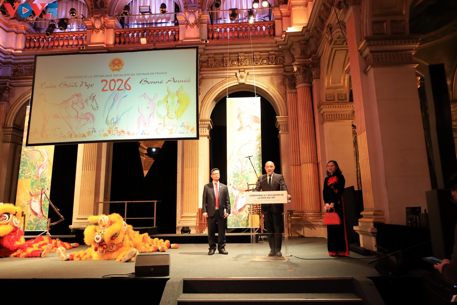 Phát biểu tại buổi lễ, Đại sứ Việt Nam tại Pháp Trịnh Đức Hải nhấn mạnh năm 2026 mang một ý nghĩa đặc biệt quan trọng đối với vận mệnh dân tộc Việt Nam. Đây là điểm khởi đầu của một kỷ nguyên mới, kỷ nguyên vươn mình của dân tộc, được thúc đẩy bởi những định hướng đầy khát vọng của Đại hội Đảng toàn quốc lần thứ XIV.