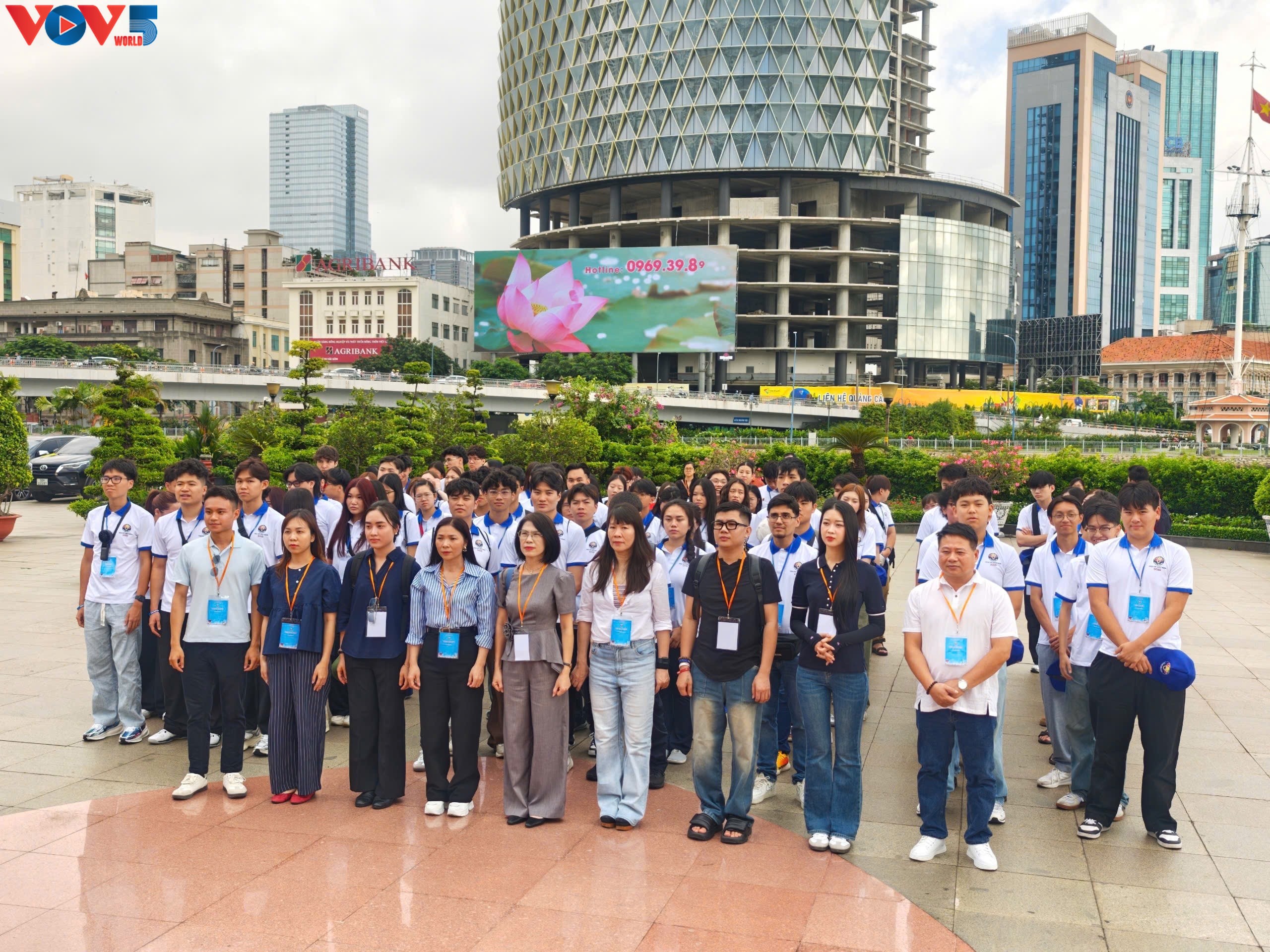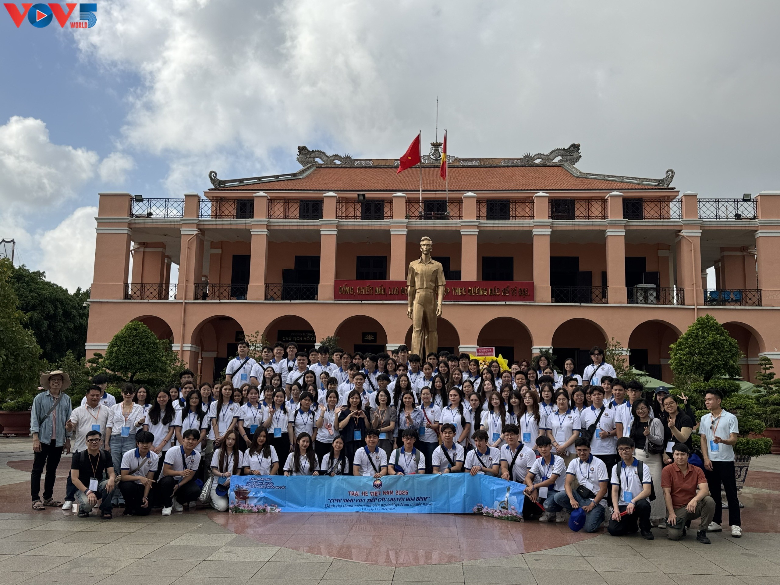 Hơn 110 trại sinh kiều bào từ 31 quốc gia và vùng lãnh thổ cùng nhau đến dâng hương tại tượng đài Chủ tịch Hồ Chí Minh ở Bến Nhà Rồng, nơi Người đã ra đi tìm đường cứu nước cách đây hơn một thế kỷ.
