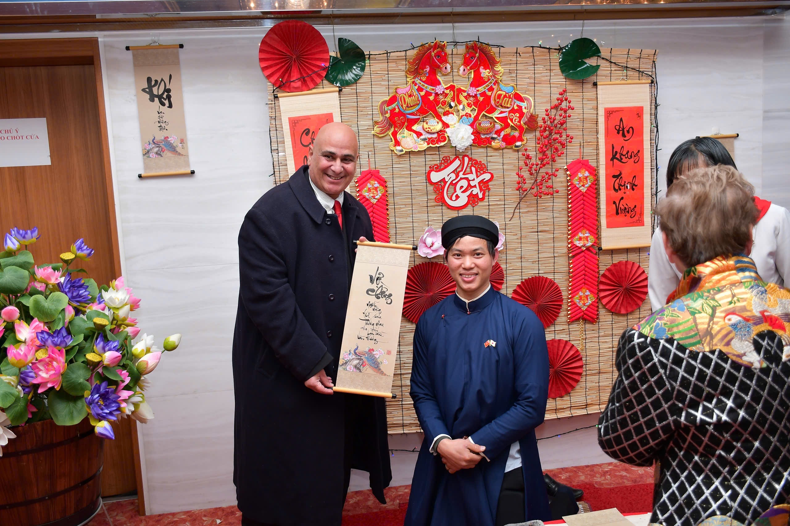 Nhân dịp này, ông bày tỏ lời cảm ơn tới Chính phủ và chính quyền địa phương Nhật Bản đã luôn tạo điều kiện thuận lợi cho cộng đồng người Việt sinh sống, học tập và làm việc; đồng thời gửi lời chúc năm mới an khang, thịnh vượng tới toàn thể kiều bào và bạn bè Nhật Bản.