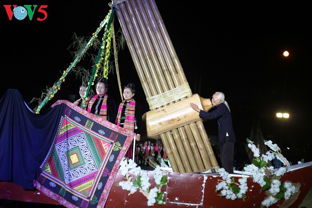 Chiếc khèn được công nhận kỷ lục không phải mô hình mà là chiếc khèn thật được các nghệ nhân trực tiếp thổi làm nền cho các điệu xòe |