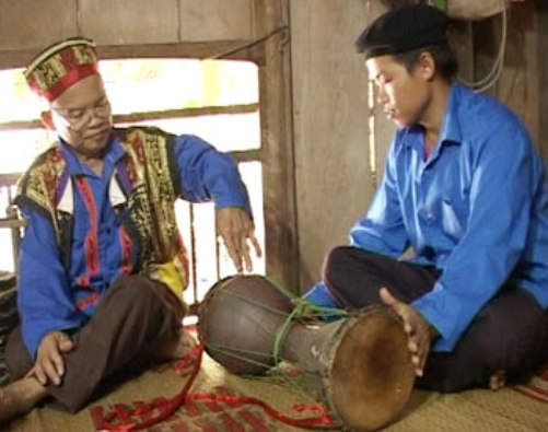 Trống sành là nhạc cụ không thể thiếu khi cúng thần linh của người Cao Lan. Ảnh KT