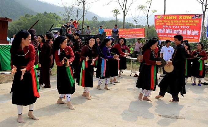 Các nghệ nhân người Cao Lan đang biểu diễn điệu múa lên nương có trong Sình ca.