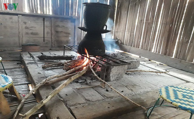 Bếp lửa nhà sàn người Thái Tây Bắc. |