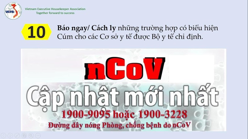 CLB Quản lý Buồng Việt Nam hướng dẫn các đơn vị thành viên 10 bước phòng chống Covid-19 tại cơ sở lưu trú