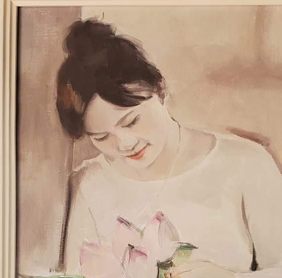 Nhà thơ Trần Kim Hoa trong tranh họa sĩ Trần Thị Trường.