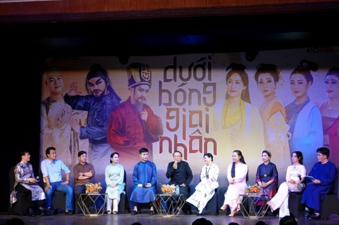 Ê kíp thực hiện dự án "Dưới bóng giai nhân" tại buổi họp báo - Ảnh: Thúy Bình/ Báo Sài gòn giải phóng |