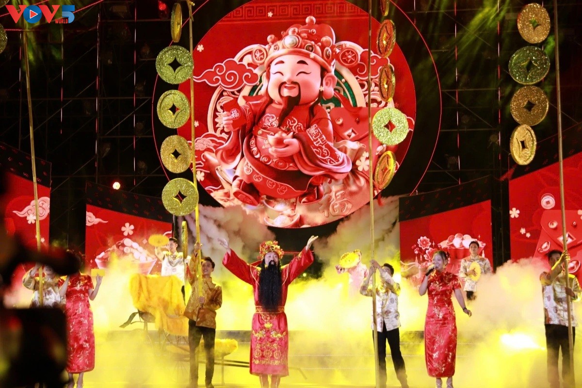 Tiết mục nghệ thuật kết hợp giữa nhạc Hoa - lời Việt cùng phần múa minh họa, khắc họa rõ nét chiều sâu giao thoa văn hóa Việt - Hoa trong đời sống đô thị phương Nam. Ảnh: VOV