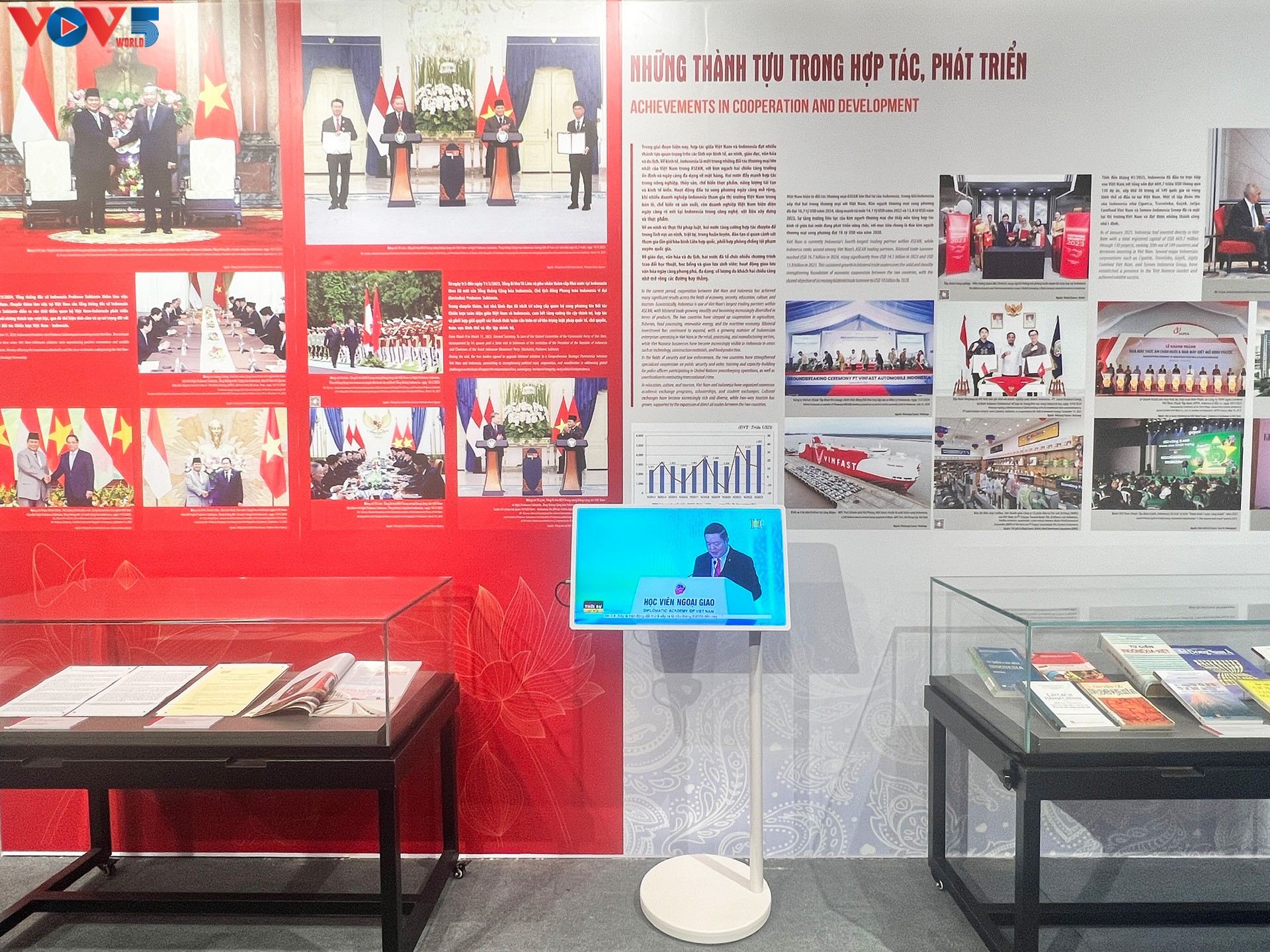 Triển lãm giới thiệu đến công chúng hơn 200 tài liệu, hình ảnh, hiện vật tiêu biểu về đất nước, con người, lịch sử, văn hoá Việt Nam và Indonesia, làm nổi bật những thành tựu hợp tác toàn diện, sâu rộng giữa 2 quốc gia trên nhiều lĩnh vực.