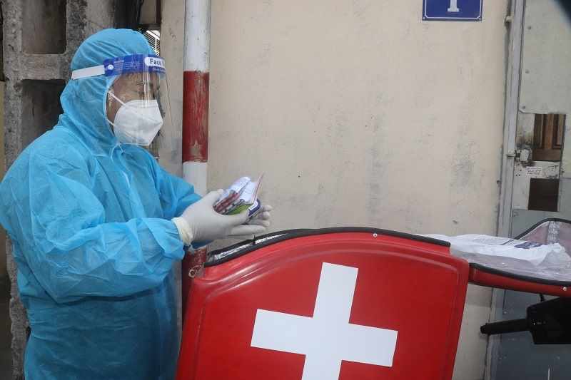 Nhân viên y tế Hà Nội mang thuốc đến cho bệnh nhân F0 điều trị tại nhà. Ảnh: Báo Kinh tế Đô thị |