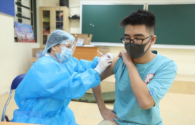 Học sinh THPT Hà Nội bắt đầu được tiêm vaccine phòng COVID-19. Ảnh: Minh Quyết/TTXVN |