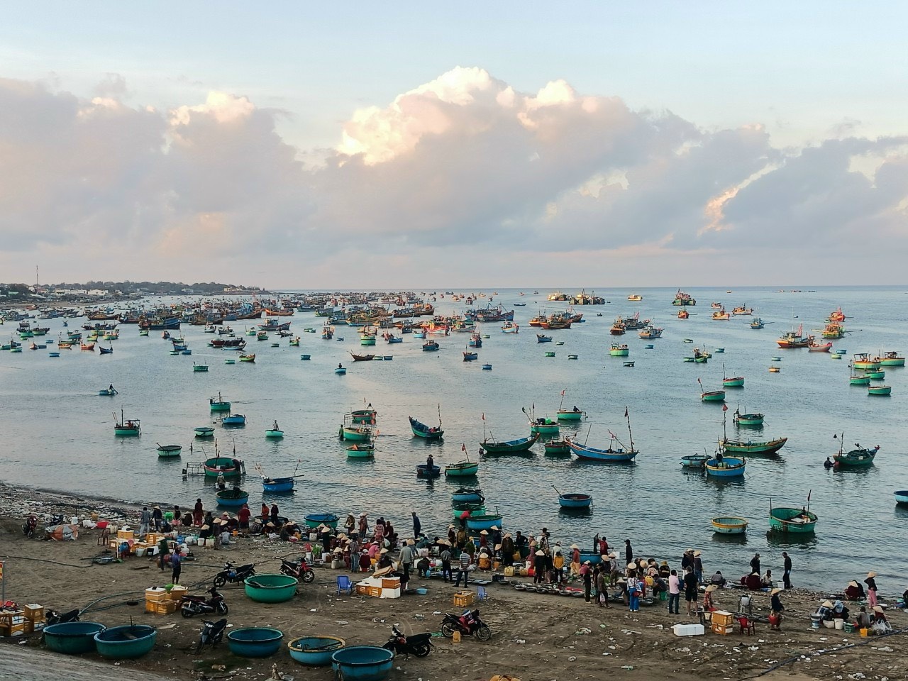 Một góc chợ cá làng chài Mũi Né buổi sáng sớm.