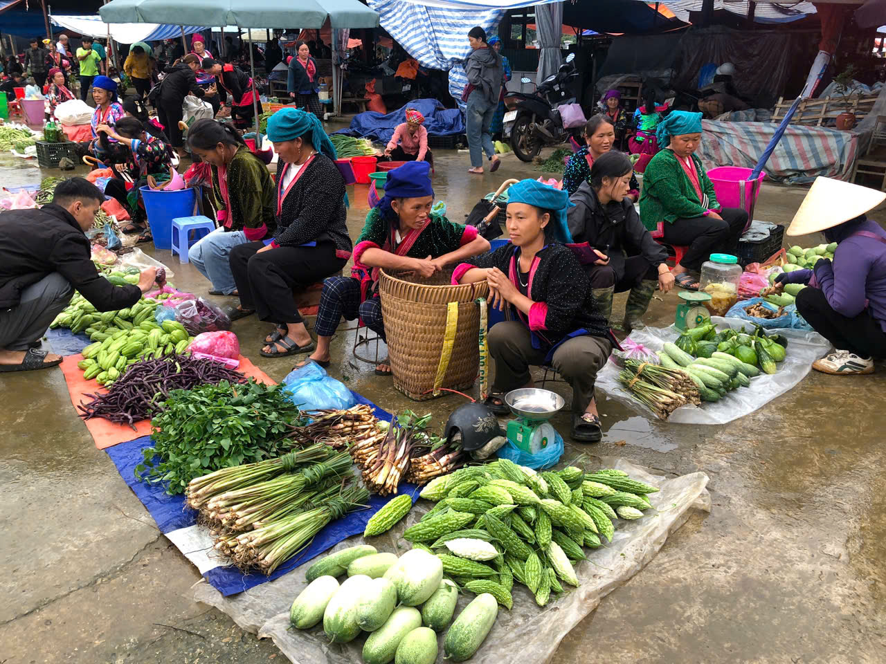 Một góc chợ phiên Tủa Chùa. Chợ hoạt động từ sáng sớm đến đầu giờ chiều ngày chủ nhật hàng tuần. Ảnh Hồng Thanh |