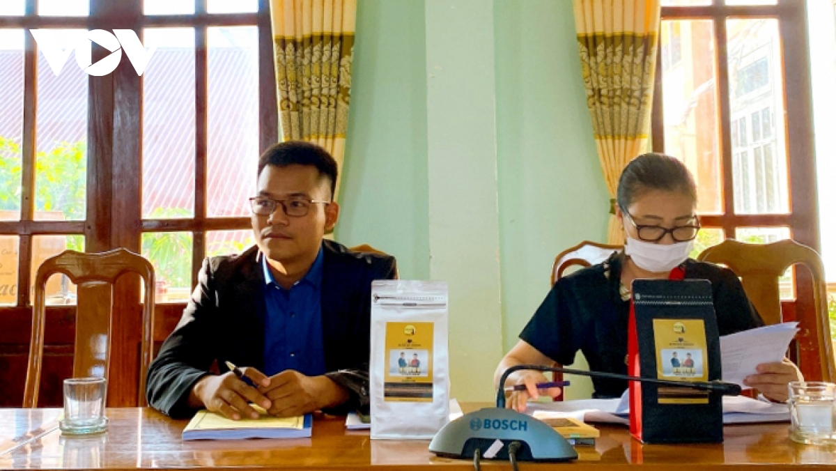 Doanh nhân trẻ Y Pốt Niê (bên trái) lắng nghe các ý kiến đóng góp để hoàn thiện sản phẩm cà phê - Ảnh: VOV