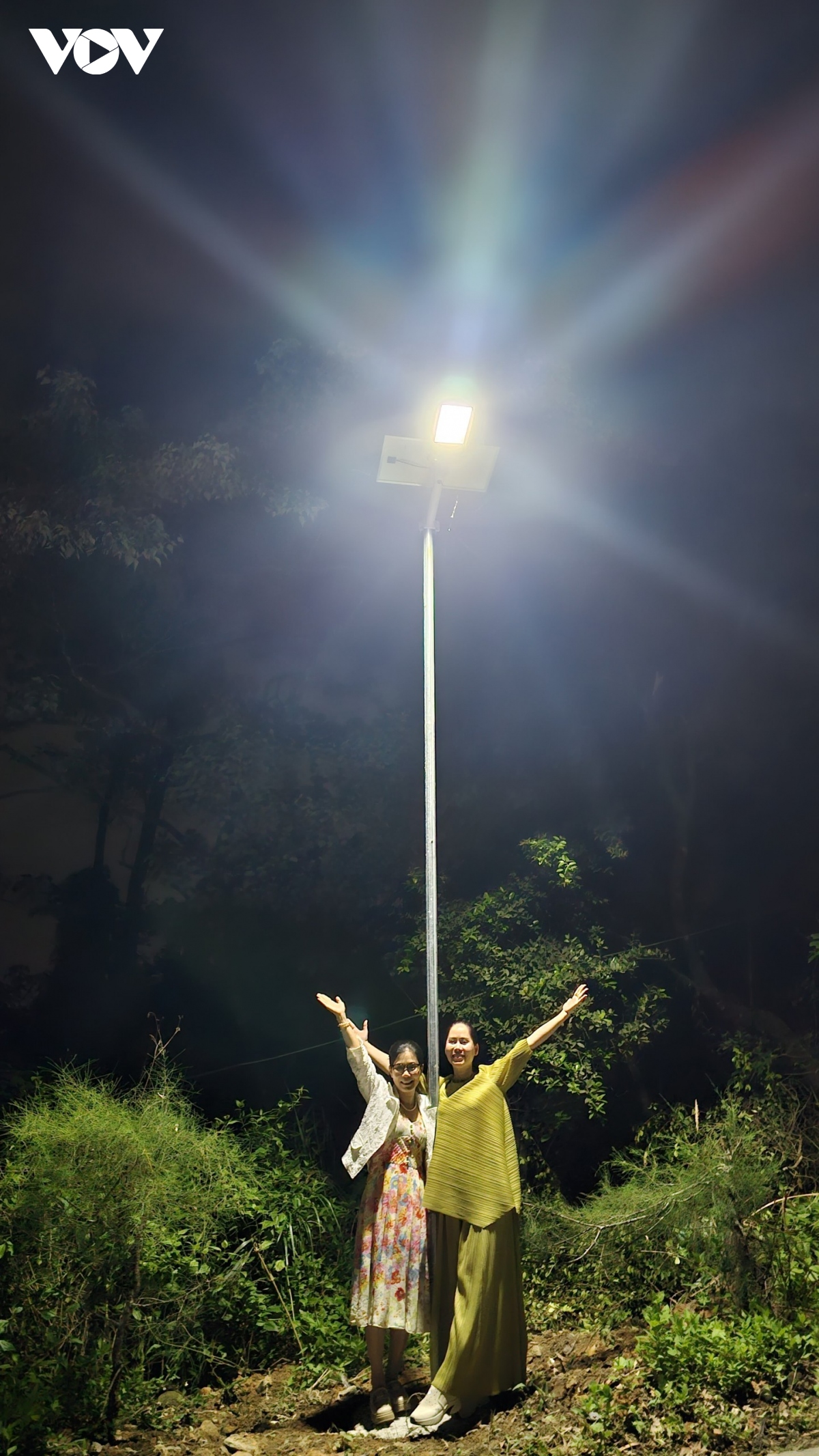 Bà Đỗ Thị Như Quỳnh, PCT Quỹ Từ thiện Vì Tương lai (bên trái) cho hay, những chiếc đèn chiếu sáng không chỉ phục vụ người dân mà còn giúp du khách thấy an tâm hơn khi đi lại vào ban đêm - Ảnh: Lan Anh/VOV