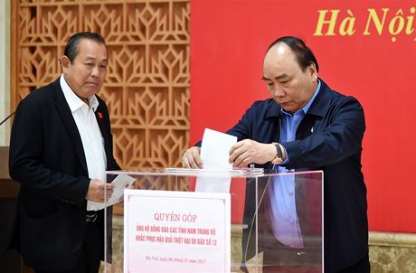 Chiều 06/11, Văn phòng Chính phủ tổ chức Lễ quyên góp ủng hộ đồng bào các tỉnh Nam Trung Bộ khắc phục hậu quả thiệt hại do bão Damrey. Thủ tướng Nguyễn Xuân Phúc cùng các