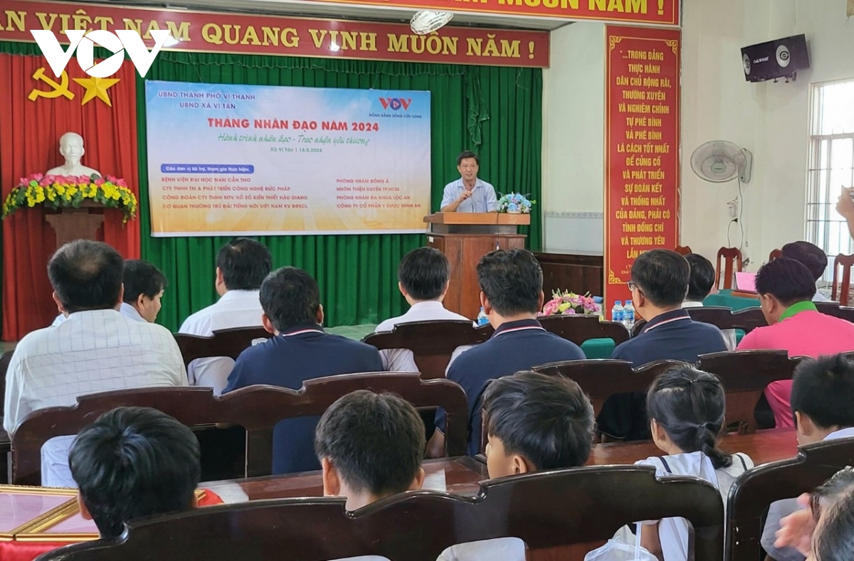 Kỷ niệm 134 năm ngày sinh Chủ tịch Hồ Chí Minh (19/5/1890 - 19/5/2024), hưởng ứng Tháng nhân đạo năm 2024, hôm nay (18/05), Cơ quan thường trú Đài Tiếng nói Việt Nam (VOV) tại Khu vực Đồng bằng Sông Cửu Long phối hợp với Ủy ban Nhân dân (UBND) thành phố Vị Thanh, tỉnh Hậu Giang tổ chức khám bệnh, cấp thuốc miễn phí cho người nghèo; tặng quà cho học sinh có hoàn cảnh khó khăn tại xã Vị Tân, thành phố Vị Thanh.
