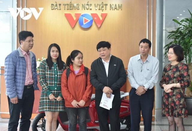 VOV trao tặng xe máy điện Vinfast cho sinh viên Phan Thị Nga, quê Hà Tĩnh. - Ảnh: VOV |