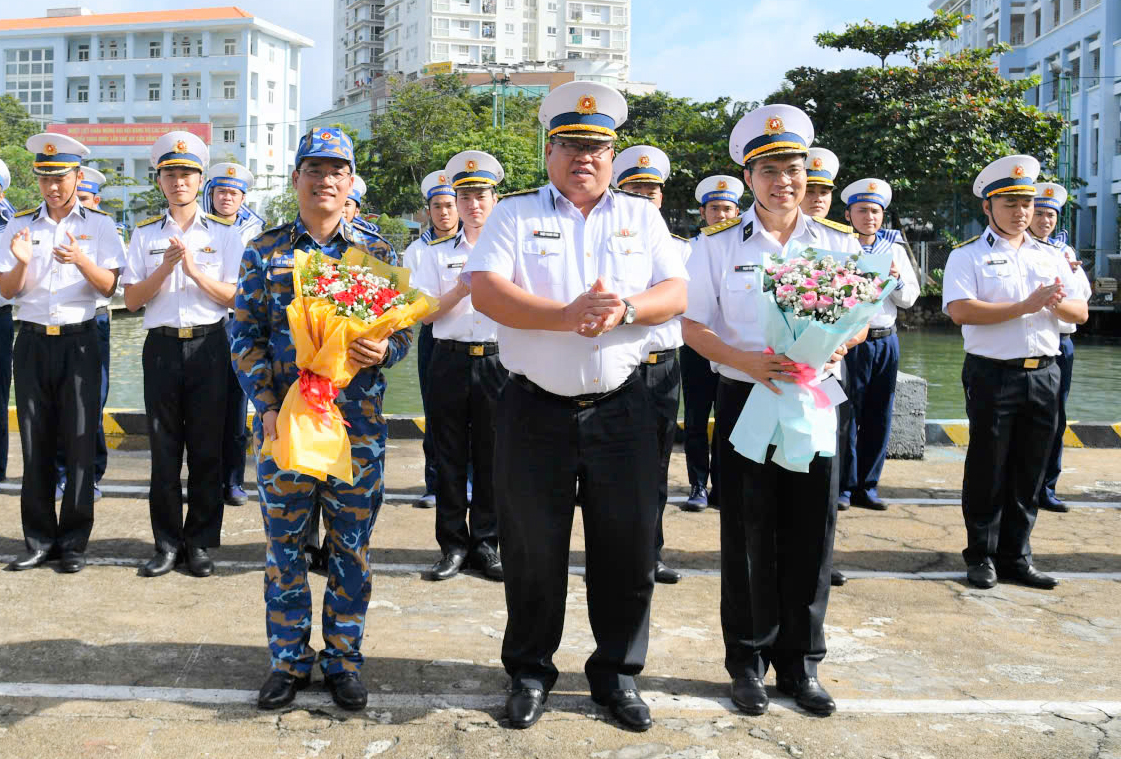 Colonel Trieu Thanh Tung, Deputy Commander of Naval Region 2, presents flowers to the working delegation and Ship 09. (Photo: Anh Tho/baohaiquanvietnam.vn) |