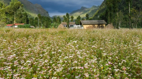 (VOVWORLD) - 年底,金色的阳光照耀着河江。山脉的黑色被荞麦花的白色和粉红色所取代。多年来,荞麦花已成为岩石高原地区的代表性花卉。每到荞麦花盛开的季节,游客便前往这里旅游。