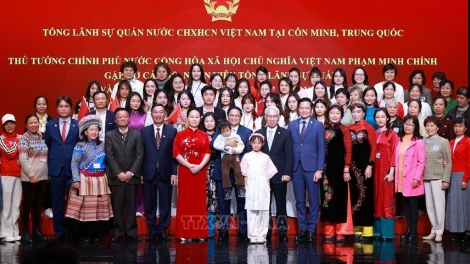 (VOVWORLD) - 正对中国进行工作访问的越南政府总理范明政5日下午在云南省昆明市会见了越南驻华代表机构工作人员和旅居中国云南省的越南人代表。