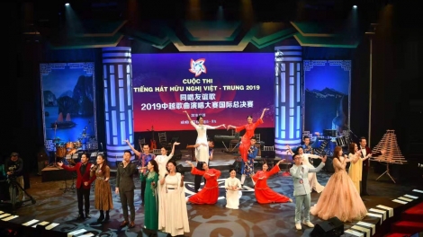 (VOVWORLD) - 2020年是越中两国建交70周年。值此之际,多项文化交流活动得到举行,以庆祝即将到来的越中建交70周年,促进越中两国文化交流。《同唱友谊歌》——2019越中歌曲演唱大赛国际总决赛于12月底在河内隆重举行, 体现了越中两国人民友好的国际文化交流活动。 通过《中国人唱越南歌、越南人唱中国歌》的方式,在越中两国民众之间架起了一座增进友谊的“音乐桥”,受到两国人民的广泛喜爱。