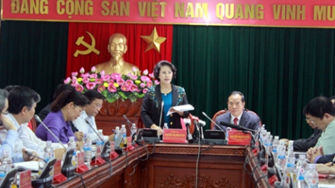 (VOVworld) - 越南国会主席、国家选举委员会主席阮氏金银4月23日就第14届国会代表和2011至2016年任期各级人民议会代表选举工作同海阳省省委常委会举行座谈。