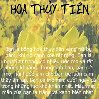 年三十当天,老河内的神台上都摆放一盆水仙花,而到大年初一,主人才把它移到客厅以供宾主观赏。家住河内市邓进东街的市民阮秋贤说:“ 春节养水仙,图的是幸运。我春节常养水仙,因为它只在春节开。节前,我到集市上买一颗球茎回来养着,希望水仙应节而开,给家人带来幸运。”