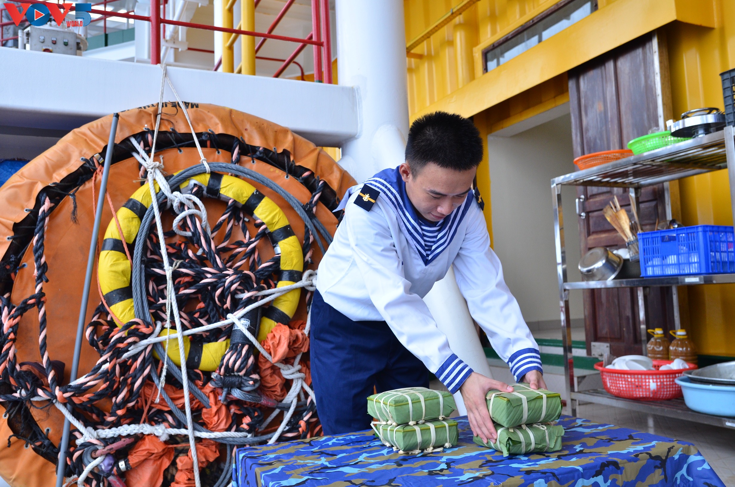 跟范文仁一样,海军战士阮黄俊杰也是一个多月前才到这里执行任务。时间虽不长,但足以让他适应了海上高脚屋上的生活。收到大陆运来的必需品,以及柊叶、糯米等年货后,阮黄俊杰同其他战友就开始准备包粽子。包好的正方形粽子整齐码放,等待入锅。年粽的熟悉味道能让指战员们缓解想家之情。