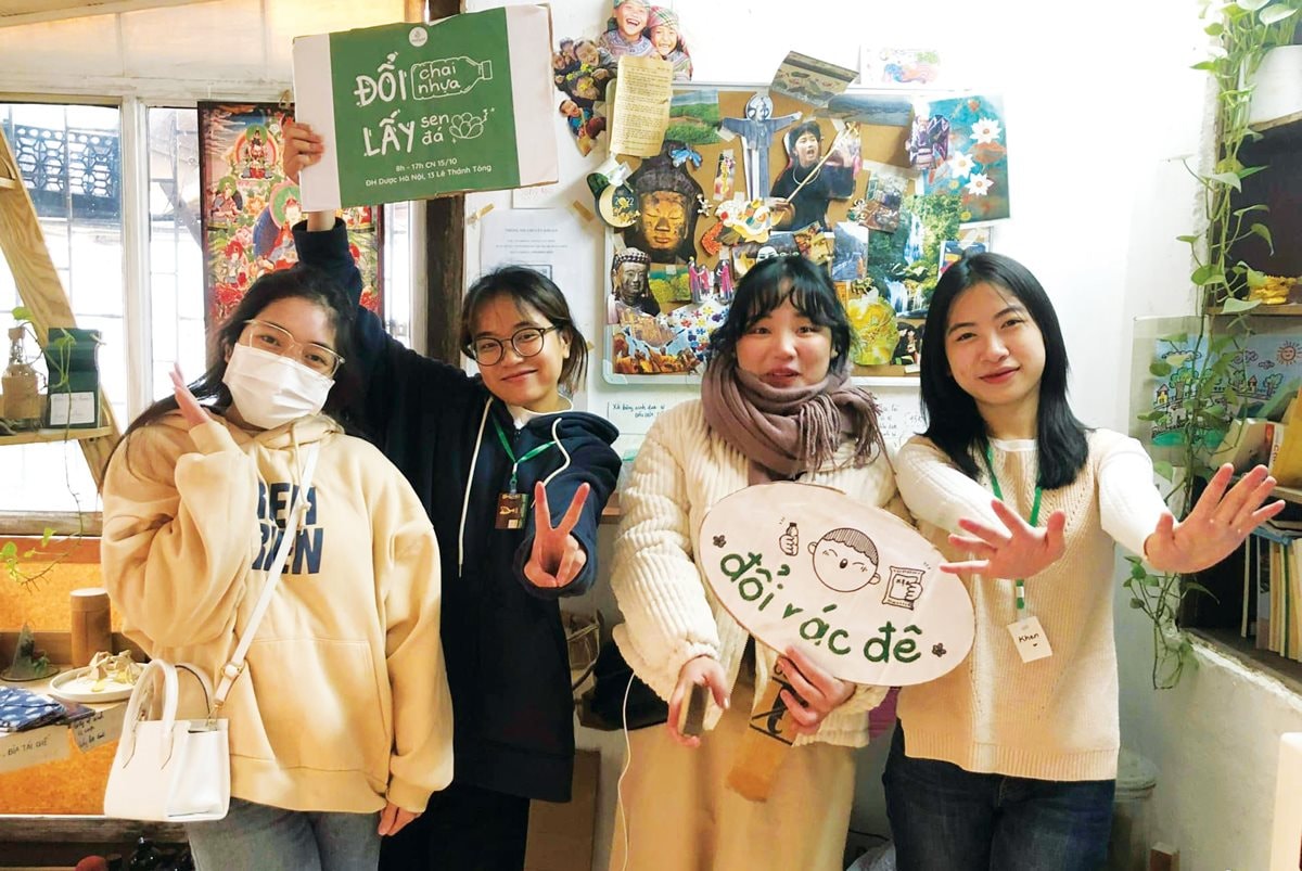 每周末,在河内市春北区青年公寓的一间小房子里,很多人带着可回收垃圾,如塑料瓶、尼龙来与《共收》小组的年轻人一起进行分类。这个小组是为建设可持续的生活环境做出贡献的社区组织。