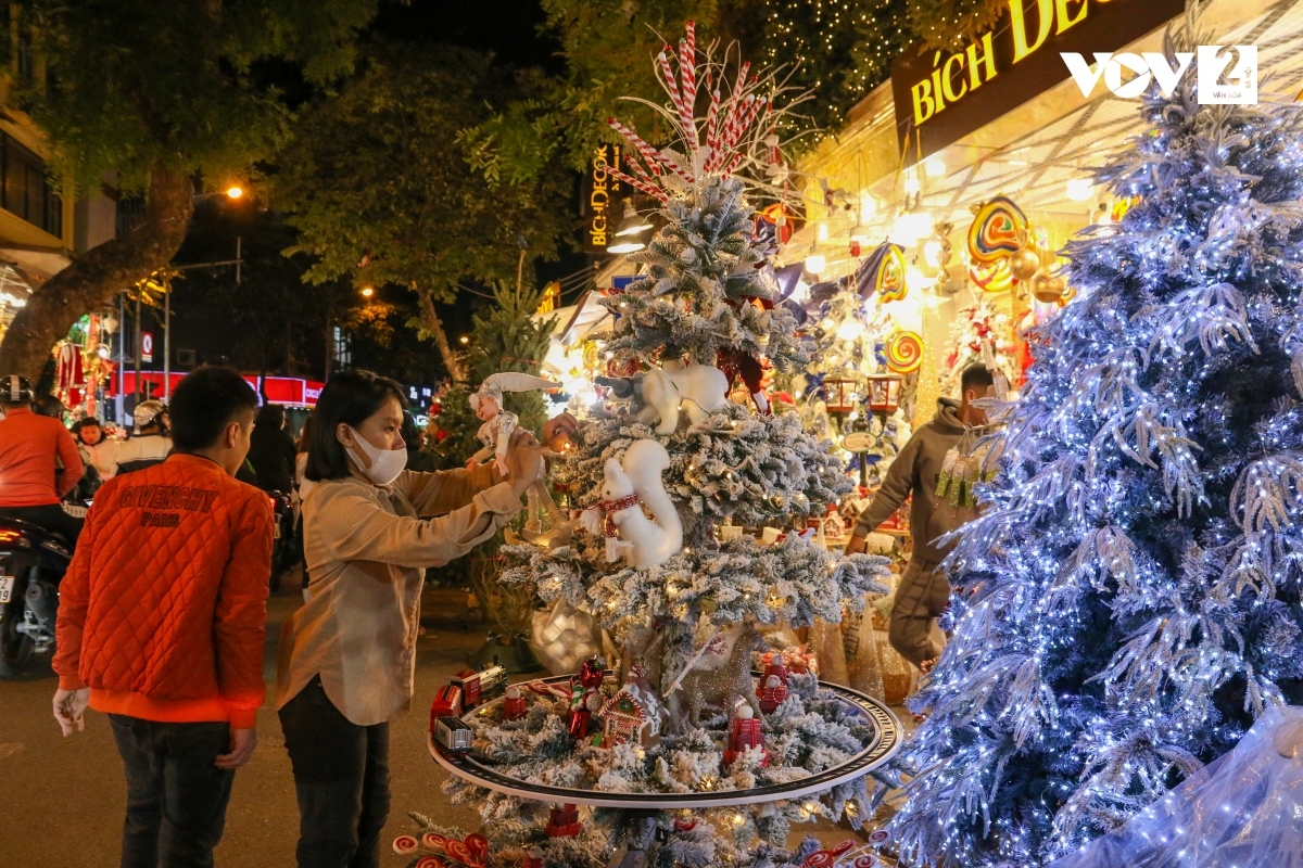 位于河内古街区,距还剑湖不到一公里的马行街(Hàng Mã)堪称河内最早迎接圣诞风的地方。这整条街主要出售各种室内装饰品,因此每到中秋、春节、圣诞节,都挤满了购物的人。半个月前,马行街各个商店就摆满了各种装饰品,从圣诞树到圣诞挂件、灯饰、彩带等。街上处处是美丽的景致,市民和游客随时能拍到称心的照片。