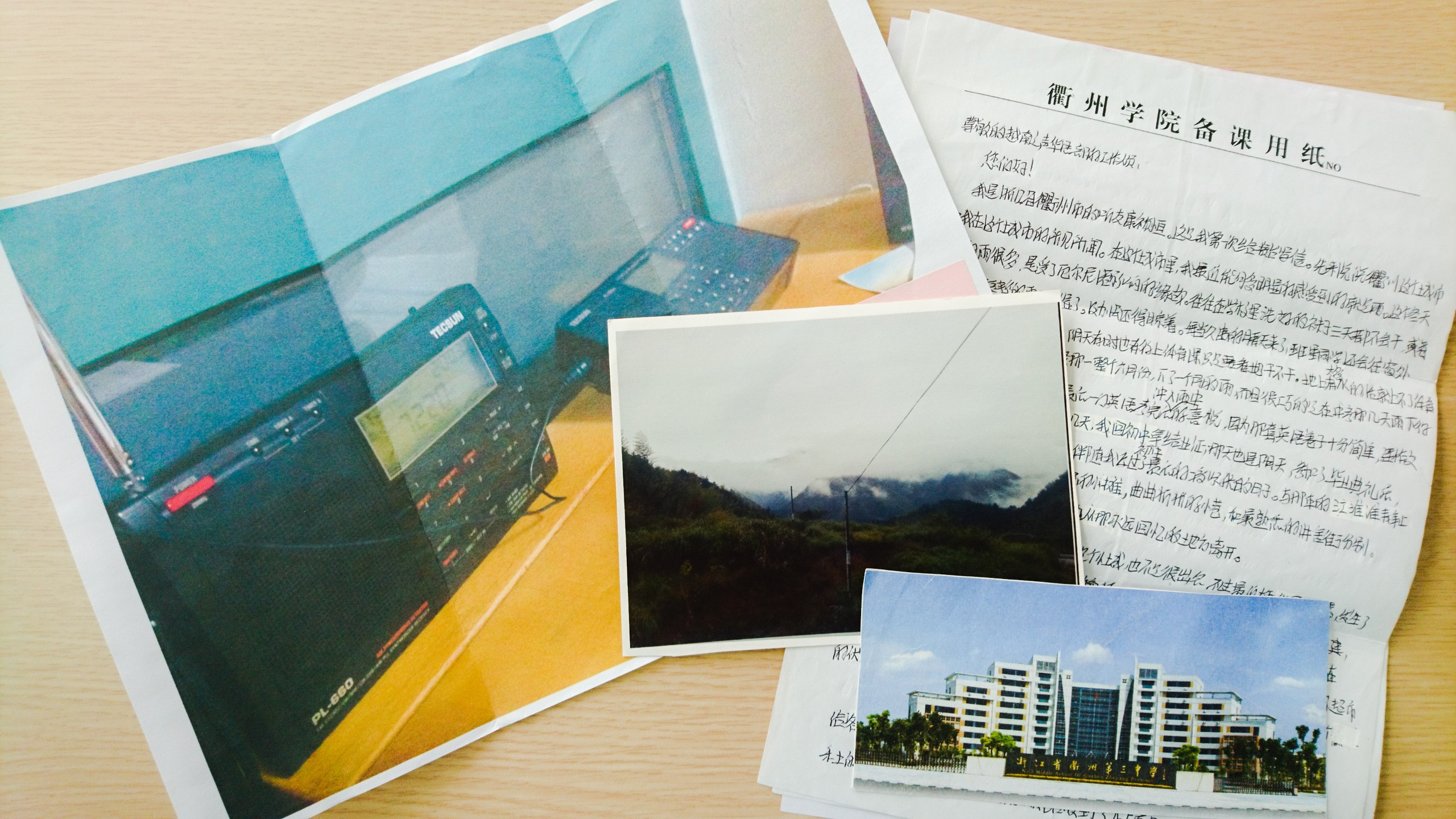 中国浙江听众康祯恒寄来了一封手写信。信中还附上收听报告,以及一张他用收音机收听本台7220千赫兹广播节目的照片,一张风景照和一张浙江省衢州市第三中学的照片。