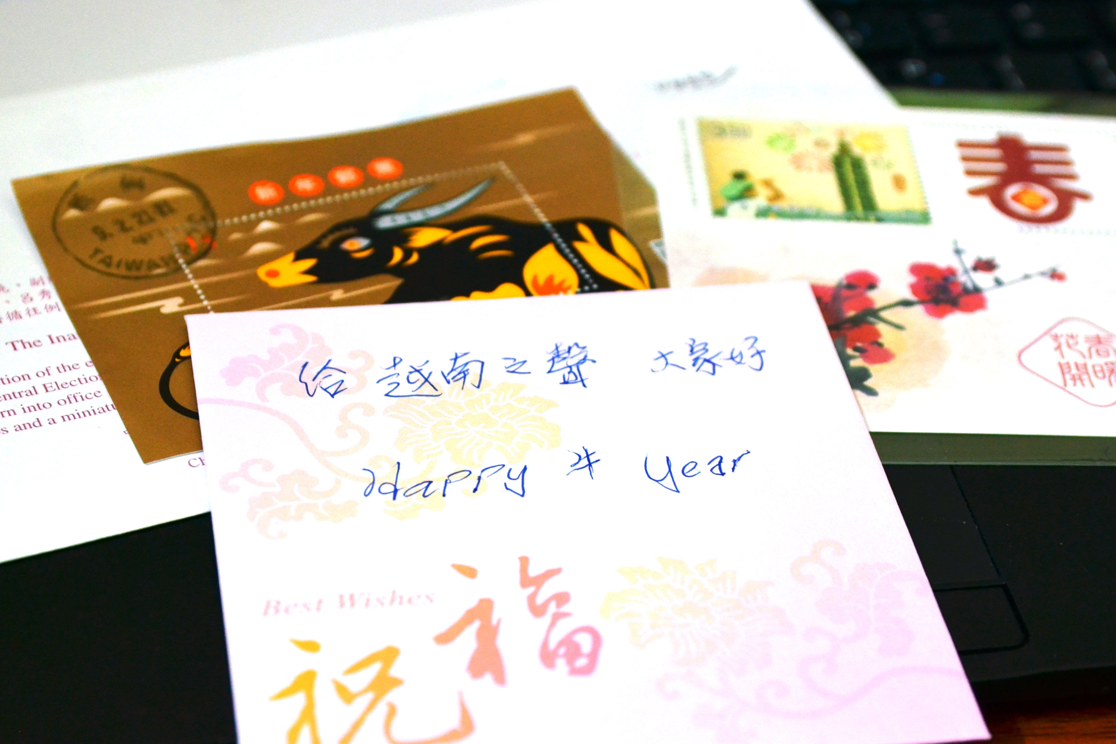 最后,我们希望向一位来自台湾高雄的老听众 Lu Cheng Nan 表示感谢。我们十分高兴,因为最近收到了他寄来的一封新春贺信,里面还附有精美的春节邮票。可能是因为疫情原因,直到春节过后的上周末我们才收到。不过,没问题,Lu Cheng Nan 听众,谢谢你,也向你拜个晚年。这份礼物,我们会珍惜。感谢各地老听众那么多年一直陪伴我们。(完)