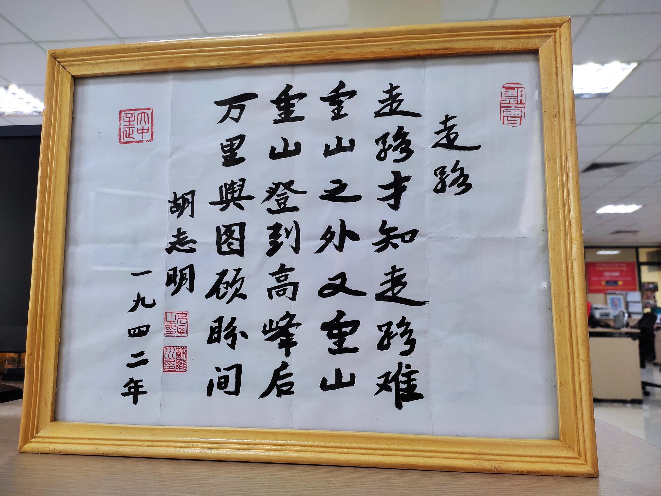 张瀚文抄写的胡志明主席《狱中日记》诗抄中的《走路》。 |