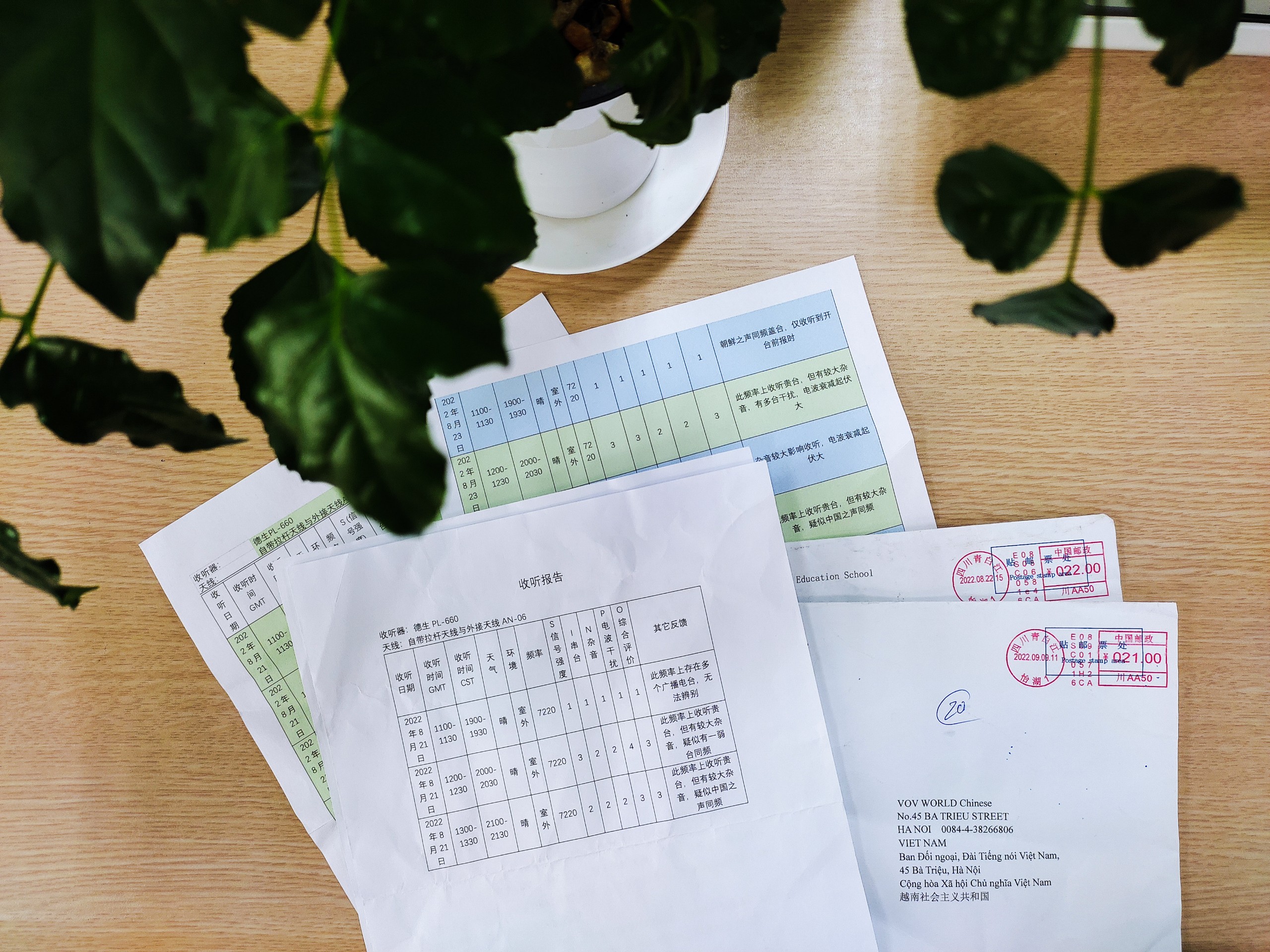 在节目的最后,希望和大家分享的是四川成都听众张瀚文的一封邮寄信件。张瀚文在信中介绍说,自己去年买了一台收音机,在偶然调整频率的时候收听到了本台广播。收到了从遥远的越南河內跨越千山万水的电波,而且在无线电广播日渐式微的情况下,仍然有坚持播音的中文广播,他倍感激动。