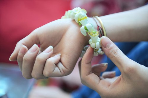孩子用线穿过柚子花结成可爱的手链、项链。玩过家家时还把花环戴在头上。隔壁的小伙和姑娘也许一起经历过如此甜蜜的柚子花季。我们继续学。
