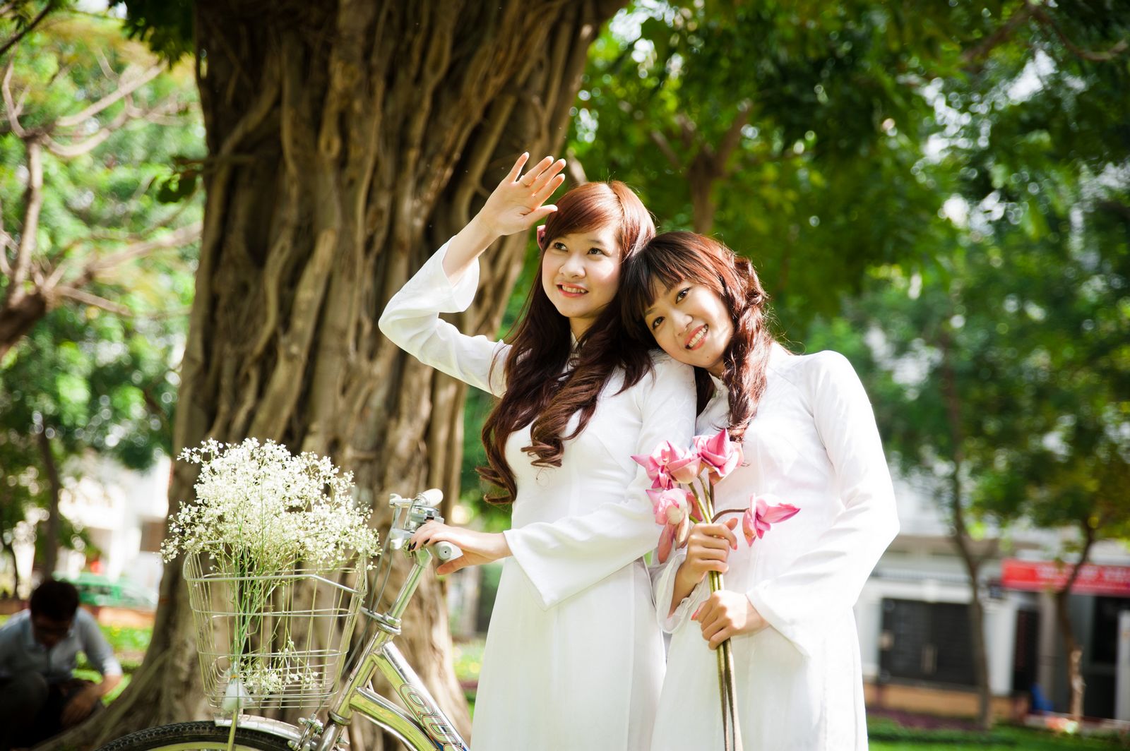 第一句:我在树下望着你的方向- Dưới hàng cây anh ngước nhìn về phía em
