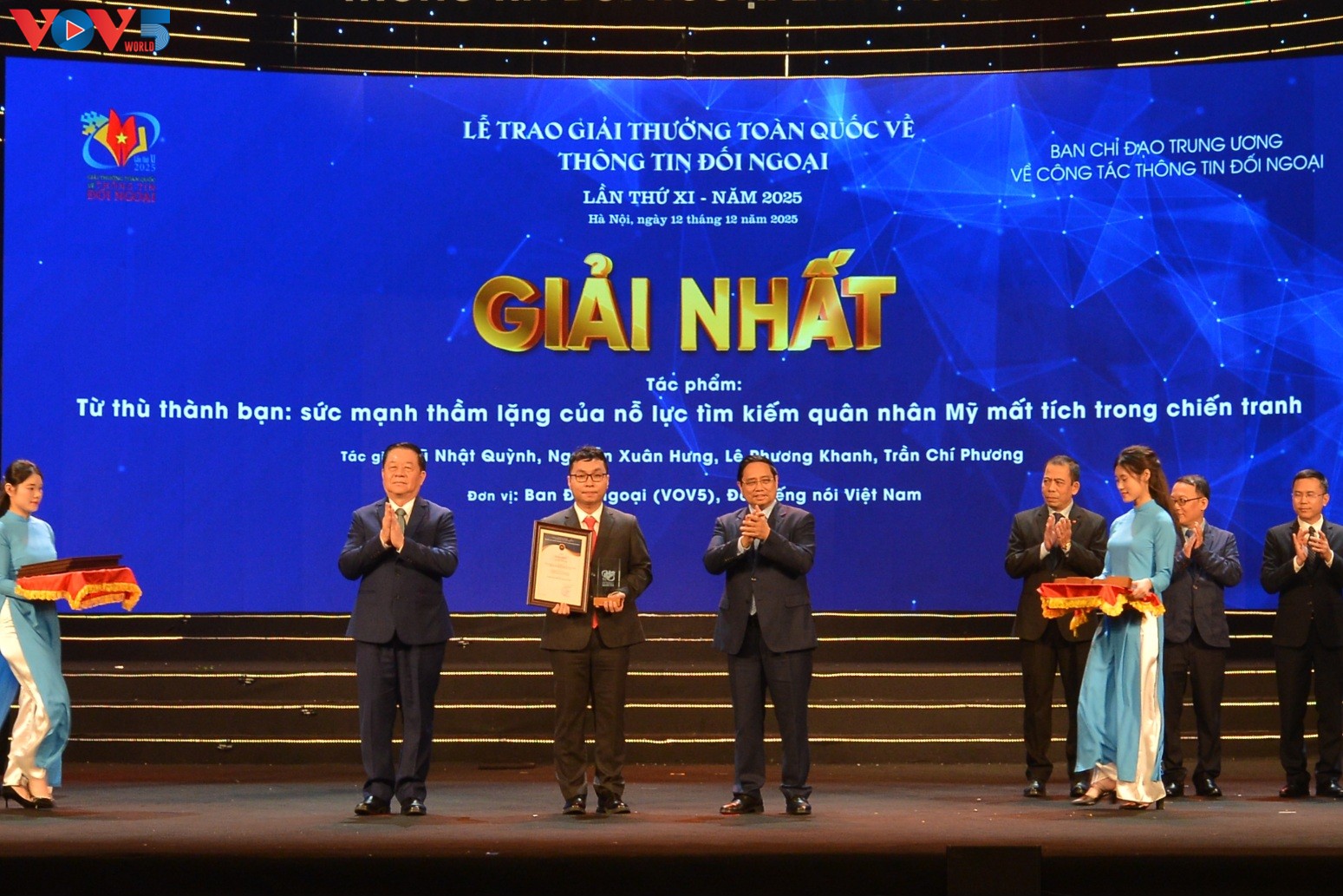 凭借作品《从敌人变为朋友:寻找战争中失踪美国军人的无声力量》获得广播类一等奖的写作团队代表、越南之声广播电台对外部记者黎芳卿说: “获得这一奖项,我永远不会忘记那一天,我从河内出发前往广治省,只为亲眼看看,亲眼见证并聆听那些参与搜寻战争中失踪的美国军人的人们的故事和经历。他们唤起了我们很多的情感和故事。我们这些记者深受感动。”