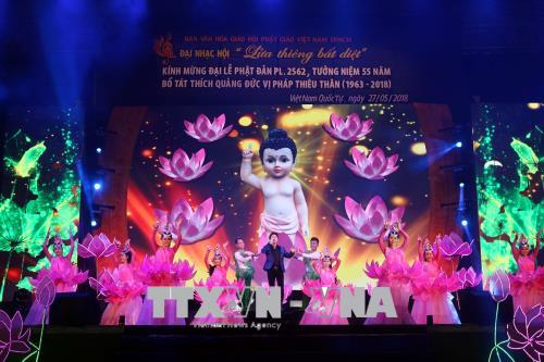 (VOVWORLD) - 胡志明市佛教教会文化委员会5月27日晚在越南国寺举行“不灭的圣火”大型音乐晚会,庆祝公历2018年佛历2562年佛诞节。