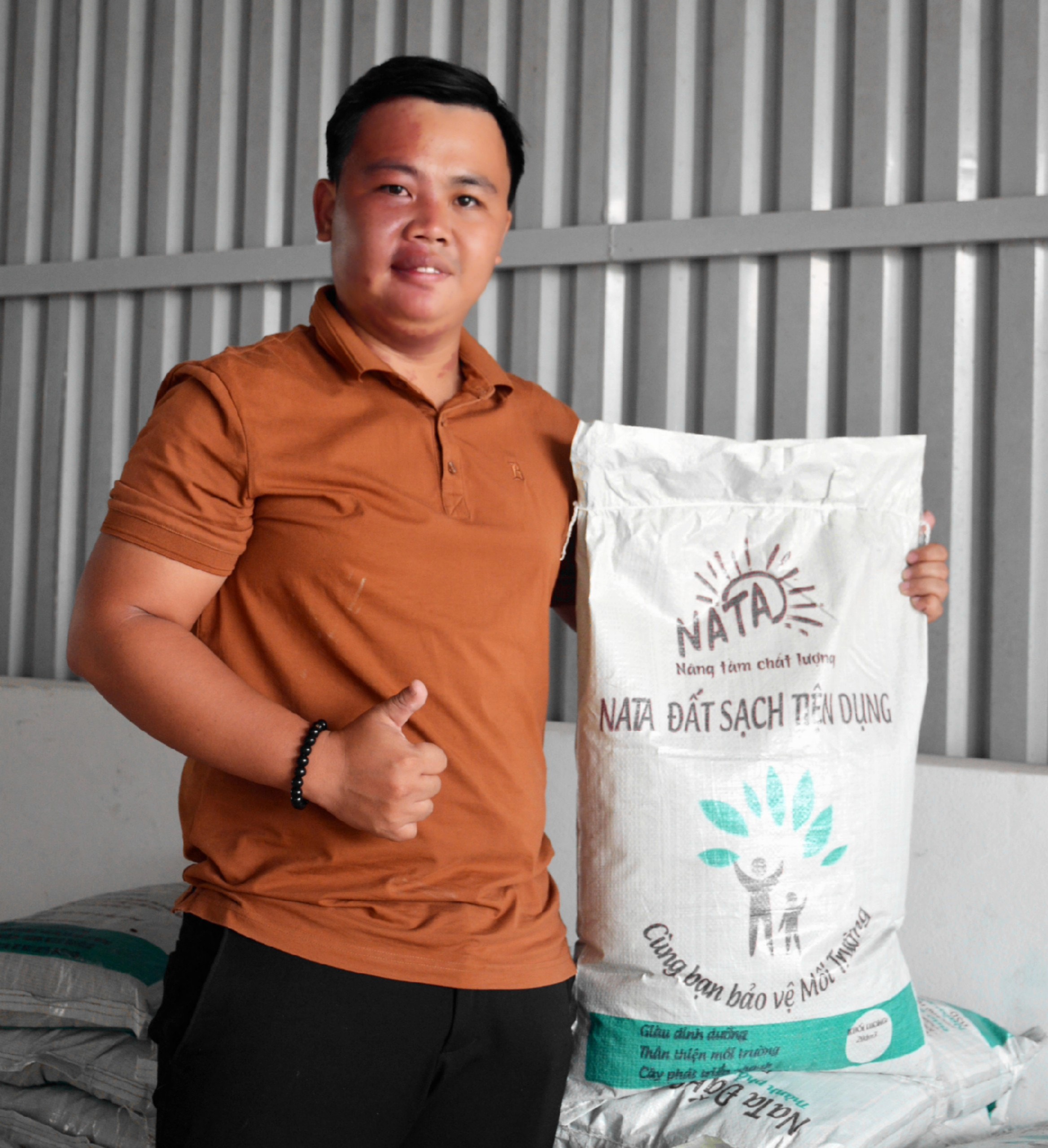 曾获得在河内举行的2016年第一届全国大学生创新创业大赛(Start-up Student Ideas)二等奖的芹苴大学学生阮友辉豪回到芹苴市后,更加痴迷于将污泥处理成有机种植土的研究工作。在研究成果基础上,他大胆成立环境治理企业,其处理后的产品是纳塔(Nata)有机种植土。