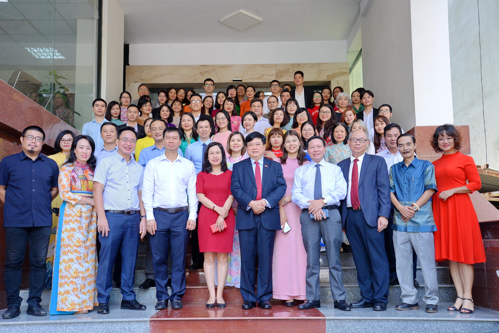 本台领导与对外部领导和采编播人员合影 |