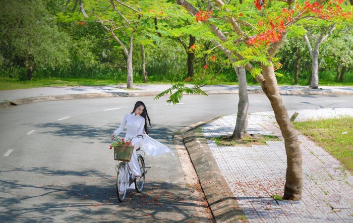 杜忠军作词,武黄谱曲的《红色凤凰花》(Phượng hồng) 成为了多代男生们的一封情书。歌词唱出了小伙子暗恋中的内心世界。他心上姑娘的身影无处不在,从车篮里的凤凰花、教室窗外的雨到白色奥黛、笔记本中的那首情诗和代表他的爱的琴声等。