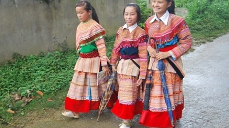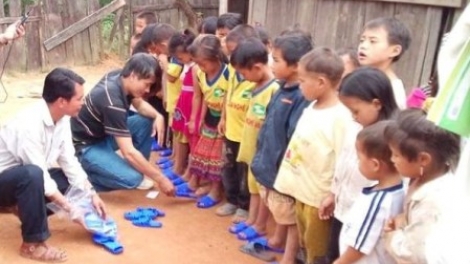 クエ・フォン県の向こう側はラオスです。そこは高くて、険しい岩山が林立する地方です。 そこに住む住民の大多数は少数民族であるタイ族、モン族、クオ・ムー族などです。生徒は貧しい家庭出身ですから、学校に行く時間以外は、家の手伝いをしなければなりません。