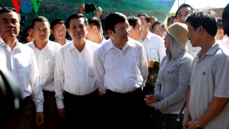 2日午後と3日午前、中部ダナン市を訪問中のチュオン・タン・サン国家主席はダナン市の漁民、および、海上での法律執行活動を終えて本土に帰ったばかりの漁業検査隊や海上警察を見舞い、贈り物を手渡しました。