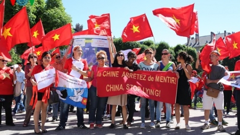 22日、フランクフルトを含め、ドイツ西南部に在留中のベトナム人はデモ行進を行い、中国がベトナムの排他的経済水域と大陸棚に石油リグ海洋を不法に設置し、挑発行為を繰り返していることに強く抗議しました。