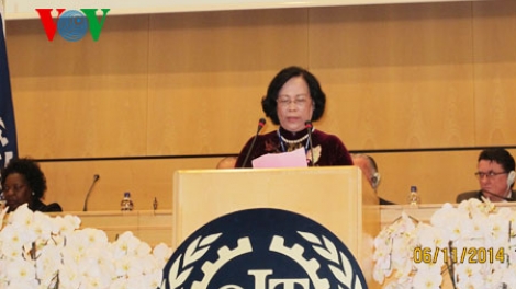 11日、スイスのジュネーブで開催されたILO国際労働機関の第103回総会に参加したベトナム労働傷病軍人社会事業省のファム・ティ・ハイ・チュエン( Pham Thi Hai Chuyen)大臣は演説を行い、公平的移民に関する議事日程の作成に関してILOの構想を支持すると言明しました。