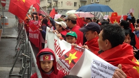 21日午後、ジュネーブの国連本部の前で、スイスに在住している世界各国の友人数百人はスローガンとベトナムの国旗を掲げ、ベトナムに対する同感を示すとともに、ベトナムの排他的経済水域と大陸棚での中国の違法な行動に反対しています。
