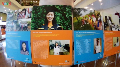 (VOVWORLD) - 10月20日の「ベトナム女性の日」を記念するにあたり、ハノイ市トゥイケー通り20の「女性創造センター」で、「女性と創造」展示会が行われています。 展示会では、科学技術や、教育、社会、日常生活に関する100点の研究テーマや、ソリューションなどが紹介されています。 また、この展示会は国の発展事業への女性たちの貢献、代表的な女性の手本などを顕彰するチャンスでもあります。この写真記事で、これをご紹介します。 ドゥク・アイン